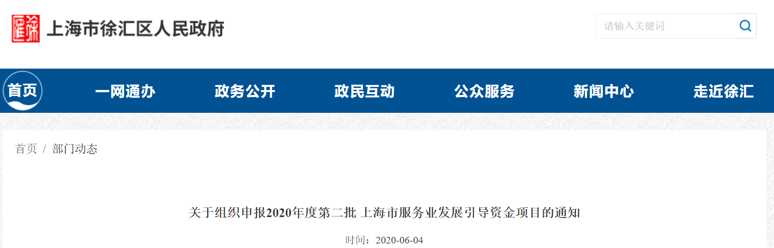 以上是“2020年度第二批上海市服务业发展引导资金项目”文章内容,想了解更多访问 徐汇区 栏目>>